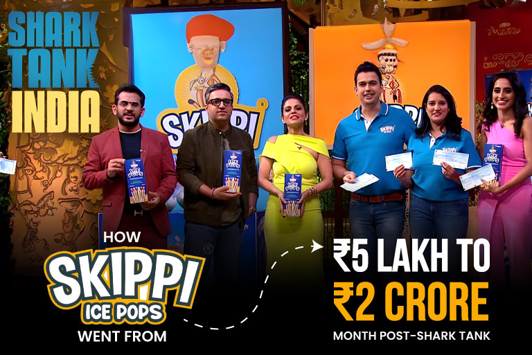 Before appearing on TV, Skippi Ice Pops was doing around ₹4–₹5 lakh/month in sales. But within just 6 months of the show, sales scaled up to ₹2 crore per month, nearly a 40x jump in revenue.